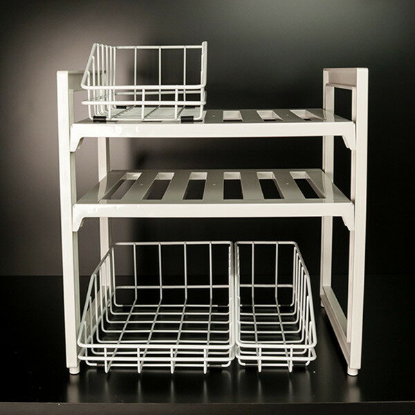 洗面所収納 2段 アレンジフリー 洗面台下シェルフ 洗面所 収納 洗面下 ( 洗面下収納 ラック 洗面下ラック 棚 2段ラック キッチン キッチン収納 収納棚 シンク下 洗面台 シンク下収納 キッチンラック 簡単 組立 )