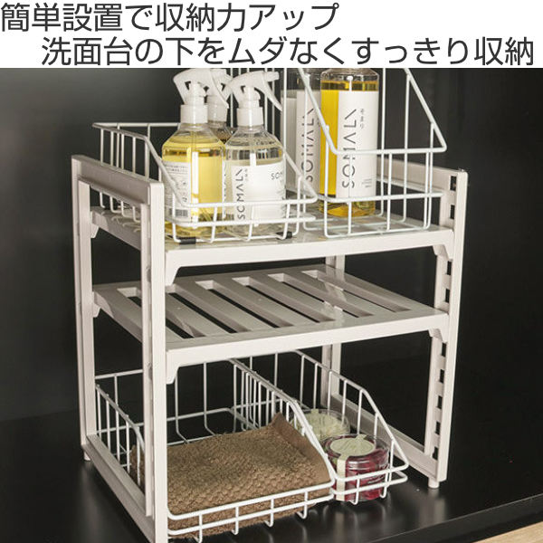洗面所収納 2段 アレンジフリー 洗面台下シェルフ 洗面所 収納 洗面下 ( 洗面下収納 ラック 洗面下ラック 棚 2段ラック キッチン キッチン収納 収納棚 シンク下 洗面台 シンク下収納 キッチンラック 簡単 組立 )【39ショップ】