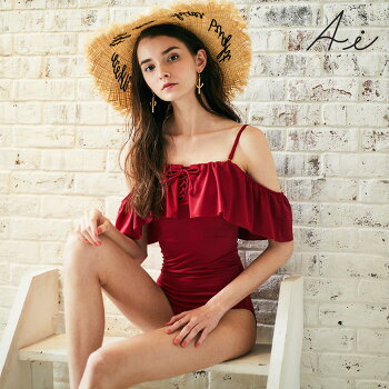 【AI Pink】Solidオフショルダーレースアップ ワンピース水着 9号 水着 みずぎ ミズギ ワンピース水着 レディース水着