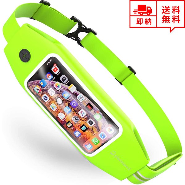 ランニング ポーチ ウエスト ポーチ ジョギング ポシェット 防水 登山 海外 旅行 防水 スマホ アイフォン 携帯 Iphone ズレない 揺れない (グリーン)