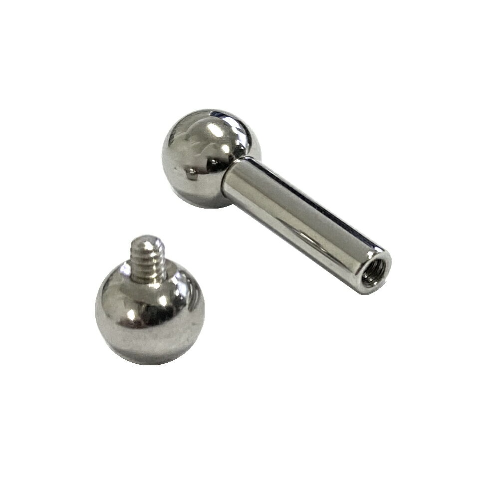 外見は定番の12ゲージのストレートバーベルですが、ボールキャッチ部分に凸のネジ山がついたピアッシングスタジオでよく使用されるプロご愛用のインターナルタイプのボディピアスです。