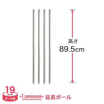 【ポイント5倍!! 4/23 20:00 ~ 4/28 1:59迄】ルミナス スチールラック パーツ ポール [継ぎ足し用ポール/4本セット] ポール径19mm 延長ポール (高さ89.5cm 延長) ADD-1990-2
