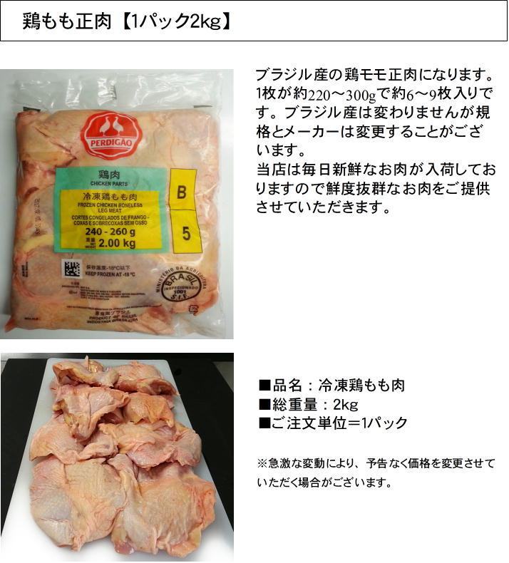 【数量限定】驚愕販売中!!【売り切れ次第終了】!【業務用】【ブラジル産】鶏もも(2kg) 焼き鳥 唐揚げ 鶏肉 鶏もも とりもも 正肉